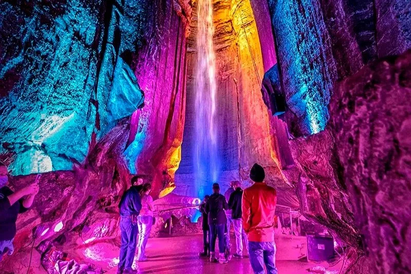 Discover the hidden beauty inside Lookout Mountain! Descend 260 feet by glass-front elevator into the mountain and explore the cavern trail to the tallest cave waterfall open to the public in the United States.